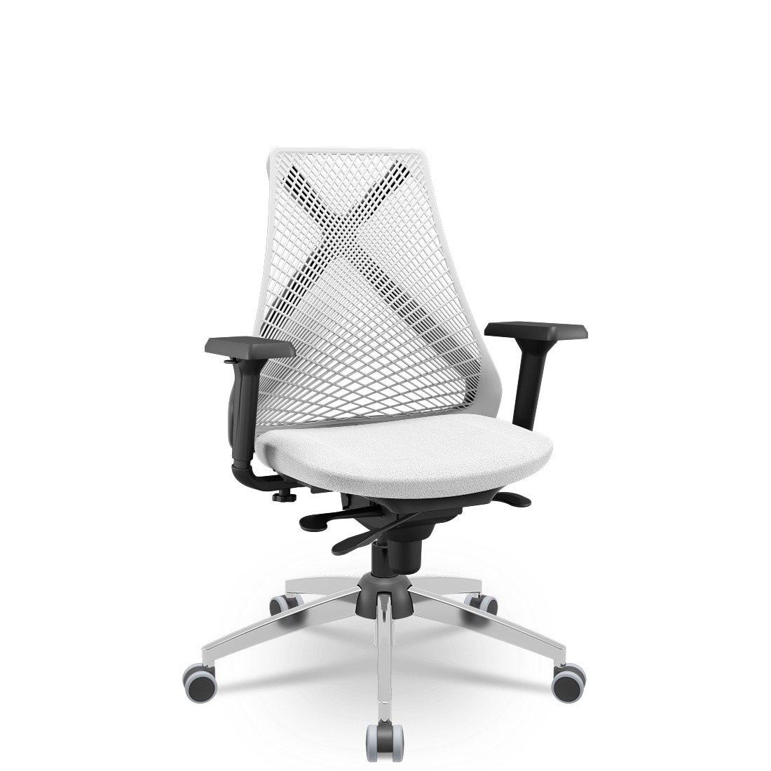 Cadeira Bix X+ Plaxmetal Tela Branca com Base Cromada, Slider e Braços Shift 4D