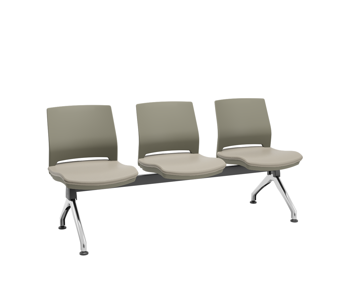 Longarina 3 Lugares Duna Plaxmetal com Assento Estofado – Basalto